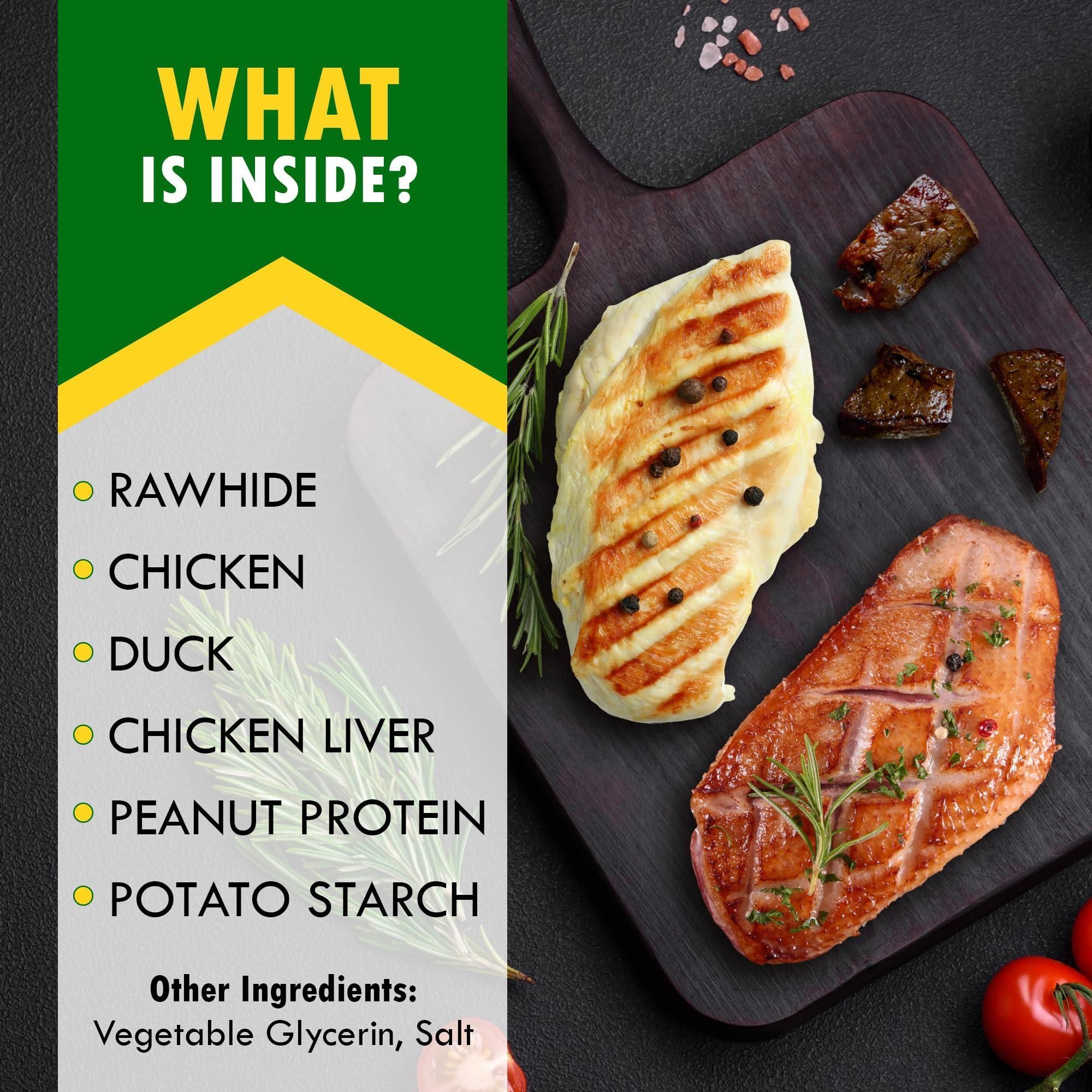 Dog Rawhide Treats with Duck and Chicken Human Grade Meat All Natural Organic Dried Snacks Grain Free Long Lasting Chews for Large and Small Dogs